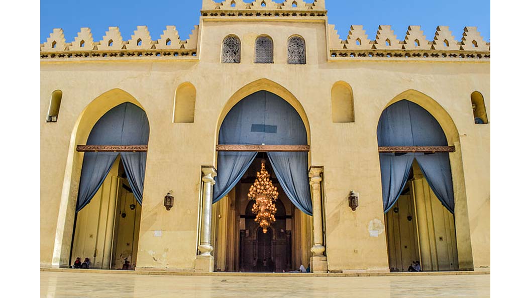 بدأ إنشاء الجامع في عهد الخليفة الفاطمي العزيز بالله عام 380هـ/ 990م، وأتمه ابنه الخليفة الحاكم بأمر الله عام 403هـ/ 1013م، ويتبع تخطيط المساجد الجامعة، حيث يتكون من صحن أوسط مكشوف حوله أربع ظلات عبارة عن دعامات بنائية تحمل عقود يرتكز عليها السقف الخشبي، وللجامع مدخل تذكاري بارز بالجهة الشمالية الغربية. توالت أعمال الترميم بالجامع، من أقدمها ما يظهر بقمتى مأذنتيه اللتان تتخذان شكل المبخرة، وهو الطراز المعماري للعديد من قمم مآذن العصر المملوكي. جُدد المسجد على يد الأمير بيبرس الجاشنكير بعد الزلزال الذي ضرب البلاد عام 702هـ/1303م، كما جُددت ظلة القبلة عمر مكرم، وكان صحنه المقر الأول لجمع التحف التي كانت أساساً لمتحف الفن الإسلامي قبل بناء المبنى الحالي.