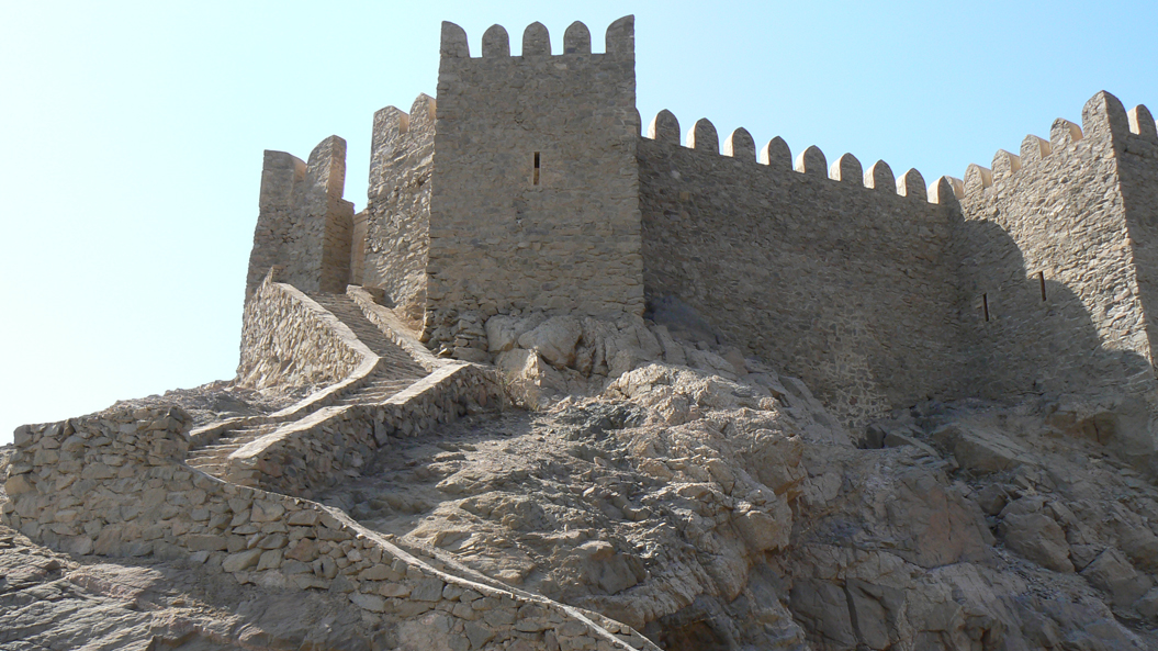 وقد جاءت التكوينات المعمارية للقلعة عبارة عن تحصينات شمالية وجنوبية، كل منهما عباره عن قلعة مستقلة بشكل مثالي، بحيث تم بناء القلعتين على تلين الشمالي فيهما أكبر حجماً وأكثر تفصيلاً، ومازال يحتفظ بالكثير من عناصره المعمارية المختلفة، بينهما سهل بنيت فيه مخازن الغلال والمؤن ووحدات خدمية أخرى. كان يحيط بالقلعة أسوار خارجية يتخللها تسعة أبراج دفاعية، تهدمت هذه الأسوار كلها تقريباً ولم يبق منها إلا برج واحد فقط في الجهة الغربية بجوار المرسى.