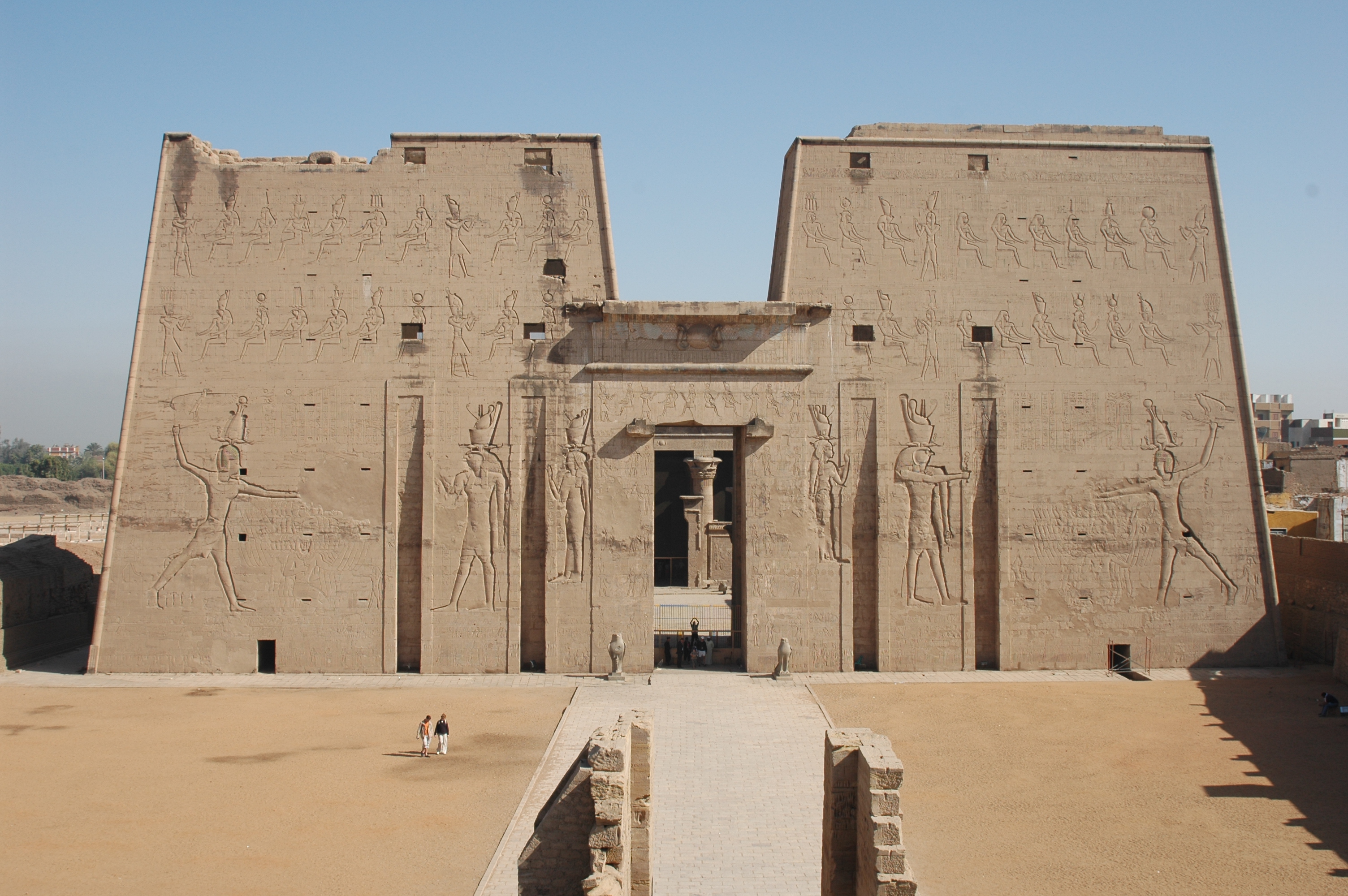 أحد أجمل وأكمل المعابد المصرية القديمة، يقع على الضفة الغربية لنهر النيل بمدينة إدفو، بدأ بناءه الملك بطلميوس الثالث، وانتهى العمل به فى عهد الملك بطلميوس الثاني عشر، وكُرس للمعبود حورس. مازال المعبد محتفظاً بكل عناصره المعمارية والزخرفية وأغلب النقوش الموجودة على جدرانه تمثل مناظر تقدمة القرابين من قِبل الملوك للمعبودات، ومناظر الحروب التقليدية وطقس تأسيس المعبد. يشتهر المعبد بتمثالين للمعبود حورس في هيئة الصقر على جانبي مدخله، ويوجد جنوب المعبد بقايا بيت الولادة (الماميزي) المُحاط بمجموعة من الأعمدة ذات التيجان النباتية.