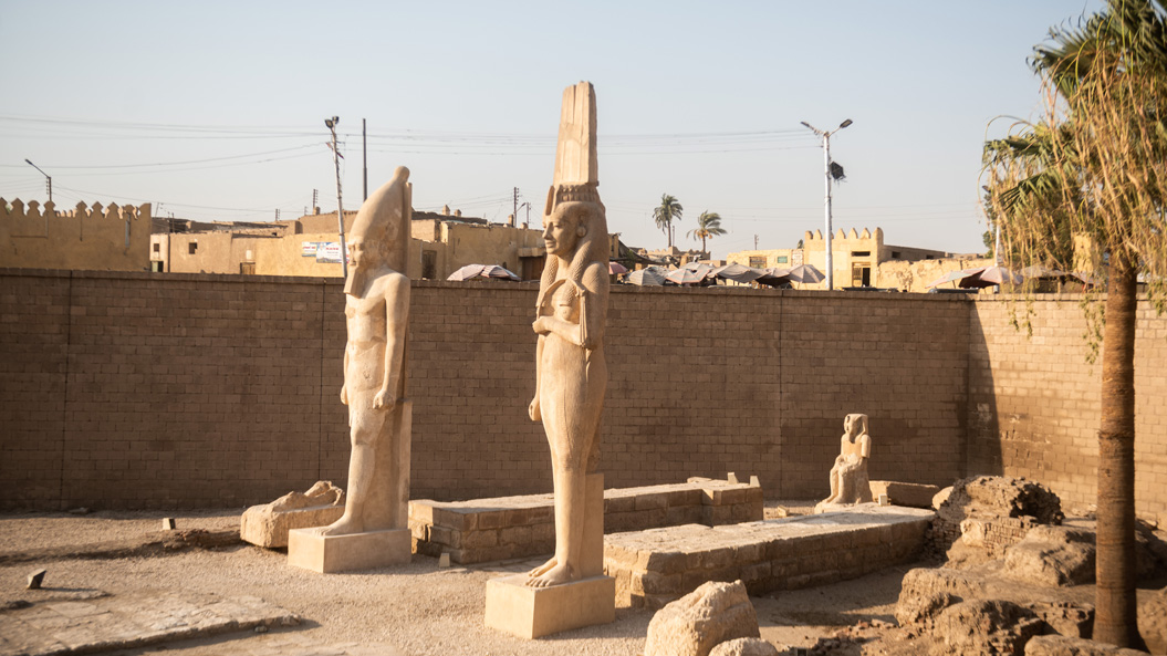 اشتهرت أخميم ببقايا معبد الملك رمسيس الثاني الذي يوجد به تمثال ابنته الأميرة مريت آمون، المصنوع من الحجر الجيري، ويبلغ ارتفاعه 13 متر ووزنه حوالي 31 طن. تعود قصة اكتشاف التمثال إلى عام 1981 بواسطة هيئة الآثار، حيث تم وضعه وعرضه في موقعه منذ عام 1991. يضم المعبد كذلك تمثال الملك رمسيس الثاني نفسه، الذي تم ترميمه وإعادة رفعه وعرضه بجوار تمثال ابنته في أبريل 2019. حيث تم العثور عليه محطماً بالكامل ومقسماً إلى حوالي 70 قطعة، وهو مصنوع من الحجر الجيري ويبلغ إرتفاعة حوالي 12 متر ويزن حوالي 45 طن، ويُصور الملك رمسيس الثاني واقفاً مرتدياً التاج الأبيض، وخلف التمثال دعامة خلفية نقش عليها مجموعة من النصوص الهيروغليفية.
